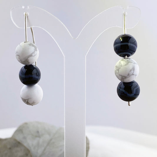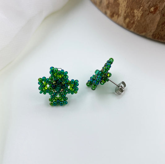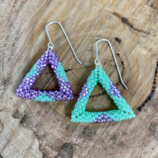 Beaded Triangle Dangle Earrings in Green/Purple or Grey/Yellow