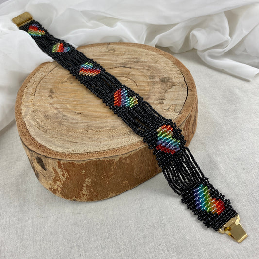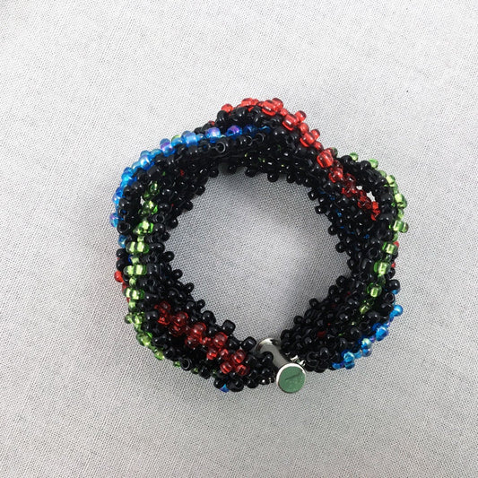 Black, Red, Green and Blue Chunky Braided Beaded Bracelet