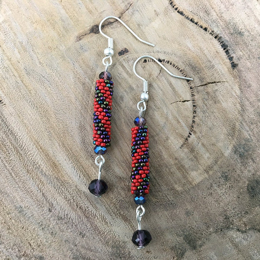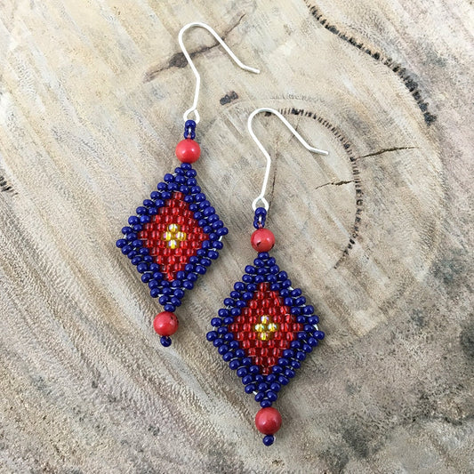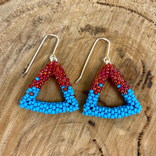 Beaded Triangle Dangle Earrings in Blue/Red or Purple
