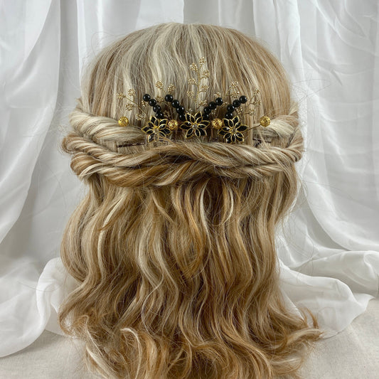 Black and Gold Beaded Hair Accessories - Wedding Set