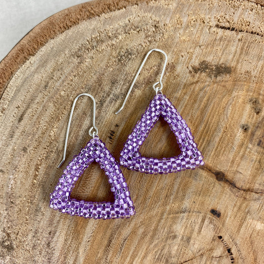 Beaded Triangle Dangle Earrings in Purple or Yellow