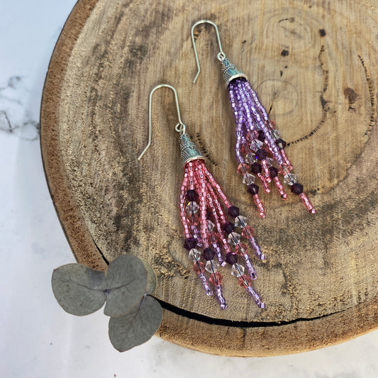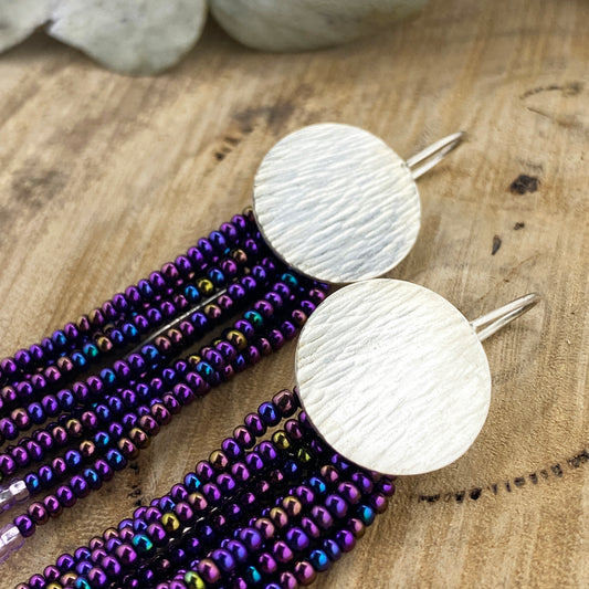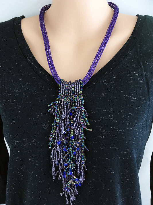 Purple Beaded Necklace with viking knitted purple wire necklace