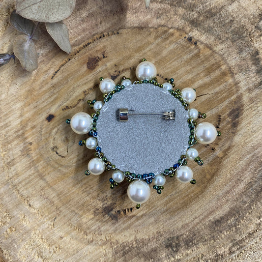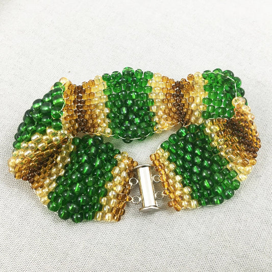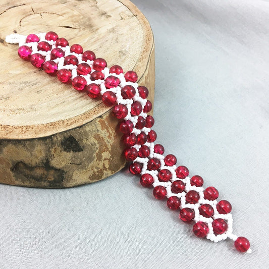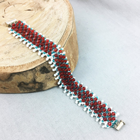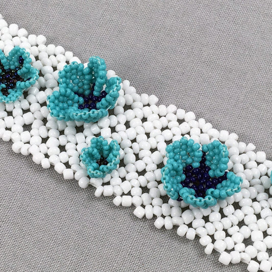 White Beaded Net Bracelet with Turquoise Beaded Flowers