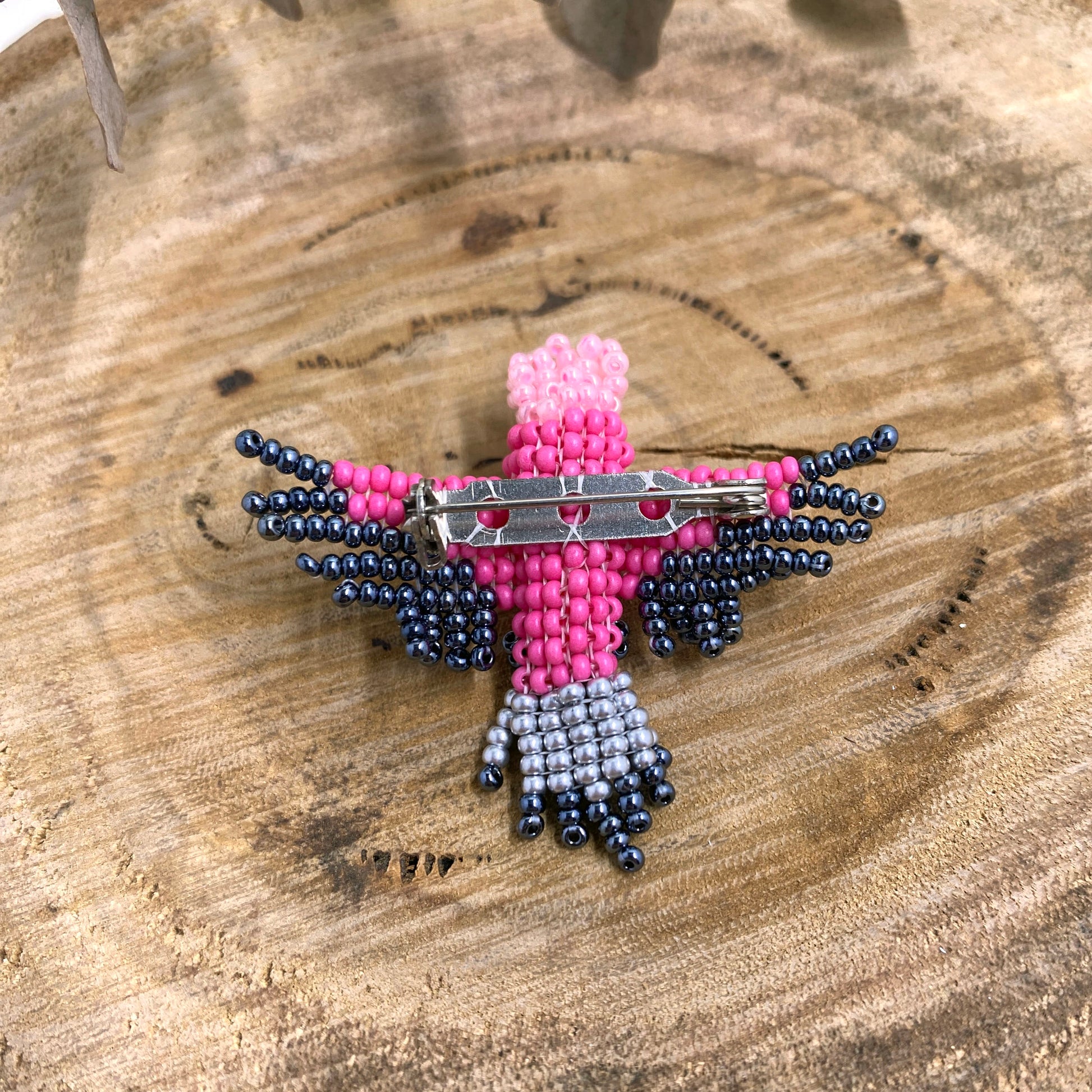 These handmade beaded brooches are made from seed beads forming 3D birds: